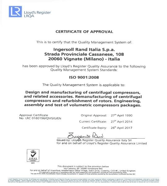 IR ISO9001 Certificate IR Italiana SpA 2014-2017